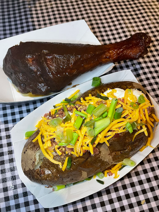 Apple Butter Turkey Leg - The jumbo smoked turkey legs were a big menu item hit! They are seasoned with 2 month aged wood and are freshly slow smoked daily. Also comes in a Cranberry-Orange flavor as well. Can find at Dancer's Snack Shack (The Pit) or Gobblers to Go. $15.99