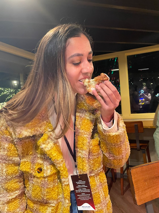 Once we got hungry, we headed over to International Street to try the Cinnamon Pull-Apart Bread (you know me...dessert first!). Chef Denis, KD's executive chef, says the bread is a Cedar Fair Amusement Park signature item, but he switches things up by flipping it upside down and adding more sugar at the end...ok, culinary genius! 🤤🍞 You can find this item at Prancer's Pizza or Blitzen's Nook or Gobblers to Go or Kettle Corn. YEP, this item is SO popular that they serve it at 4 different dining locations! $8.99