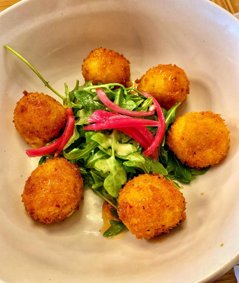 EVEN SO, I think my favorite part of the meal was actually the Fried Pimento Cheese appetizer which was heavenly! 😅🧀 Check out all the cheesy goodness inside of the fried cheese balls ➡️😛 They had some peppers in them but were drizzled in a spicy honey sauce that gave the perfect amount of sweet and spicy.